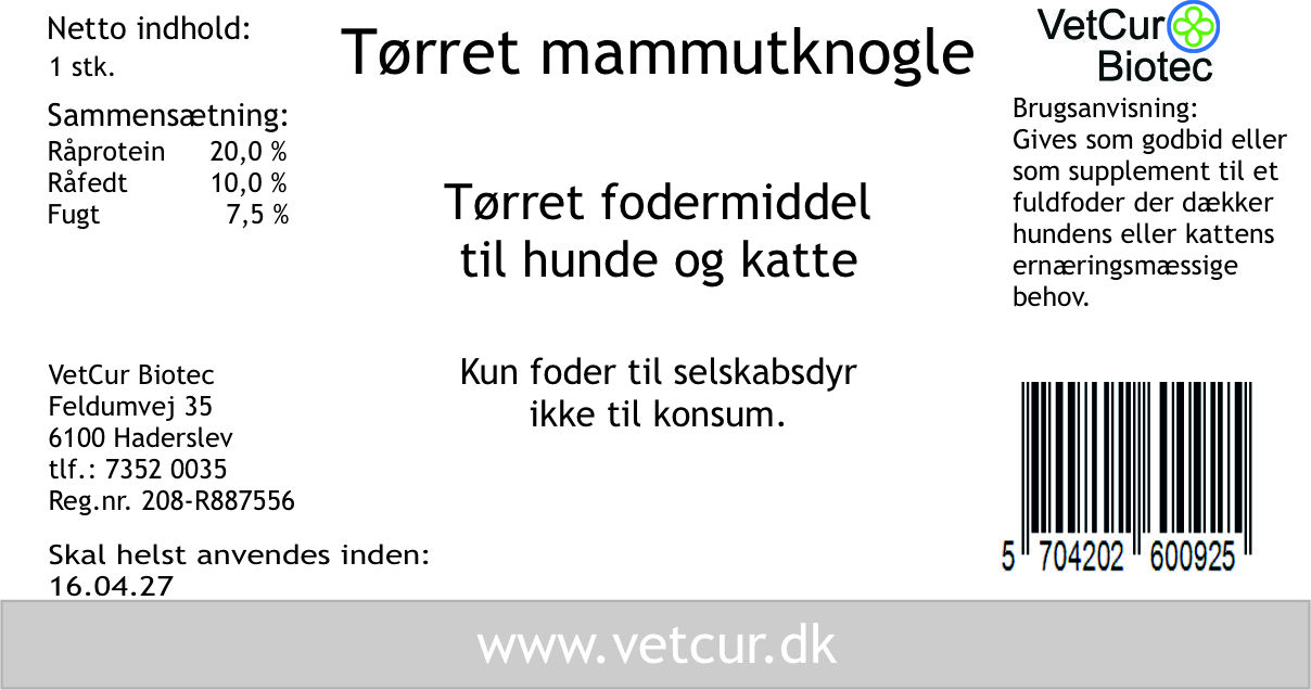 Tørret Mammutknogle – perfekte som godbidder til hunde.