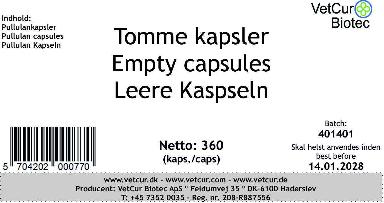 For dem, der fortsat ønsker at anvende kapsler til pulver varianterne, er her en bøtte med 360 tomme pullulan kapsler. Så kan man fylde en kapsel med den ønskede mængde pulver inden anvendelse.